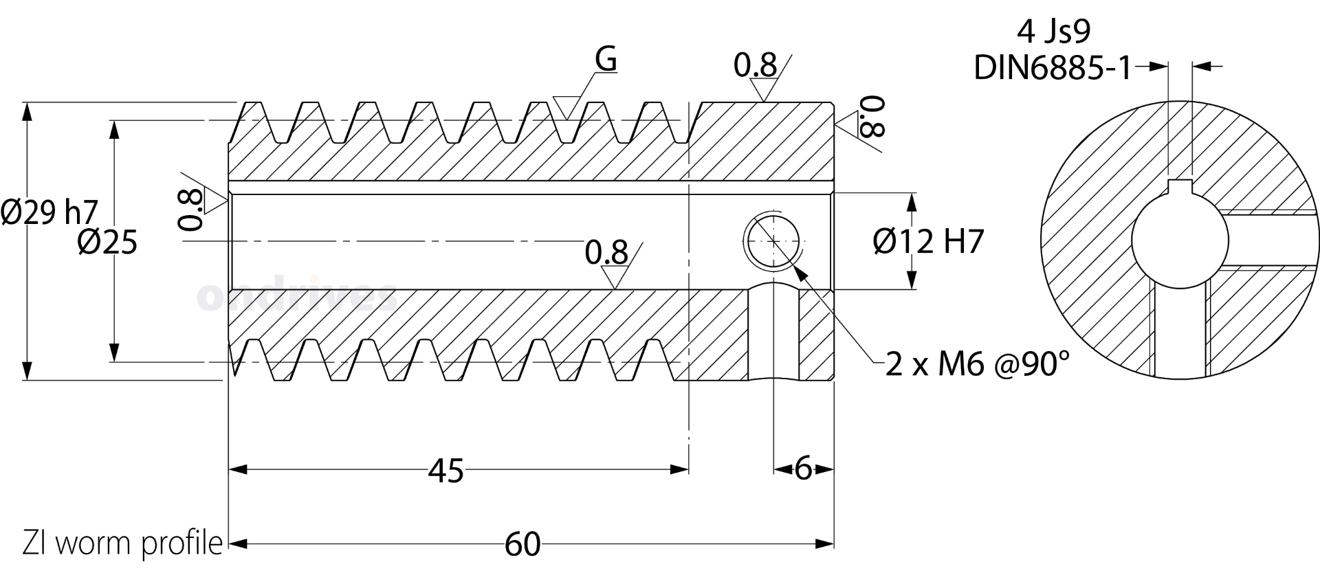 2.0 Module Case Hardened 805M20 (58-62HRC) 2 Start Ground Bore Worm 20° PA Quality Grade 6e25 DIN 3974/3967