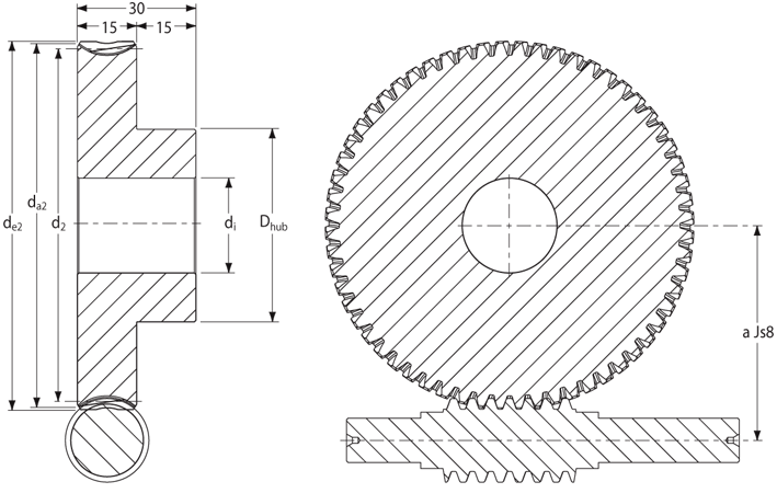 1.5 Module PEEK GF30® (Light Brown) 3 Start Precision Wormwheel 20° PA - Quality Grade 8e25 DIN 3974/3967